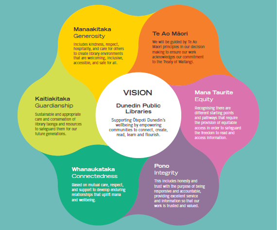 Te Puawai is our library plan that will guide and focus our efforts to achieve our vision of supporting Ōtepoti Dunedin’s wellbeing by empowering communities to connect, create, read, learn and flourish.
